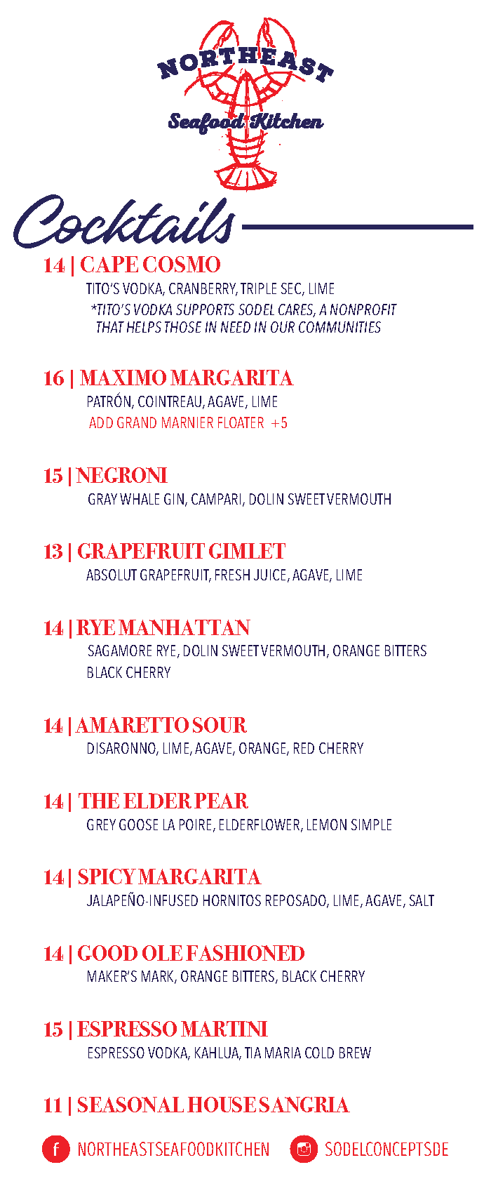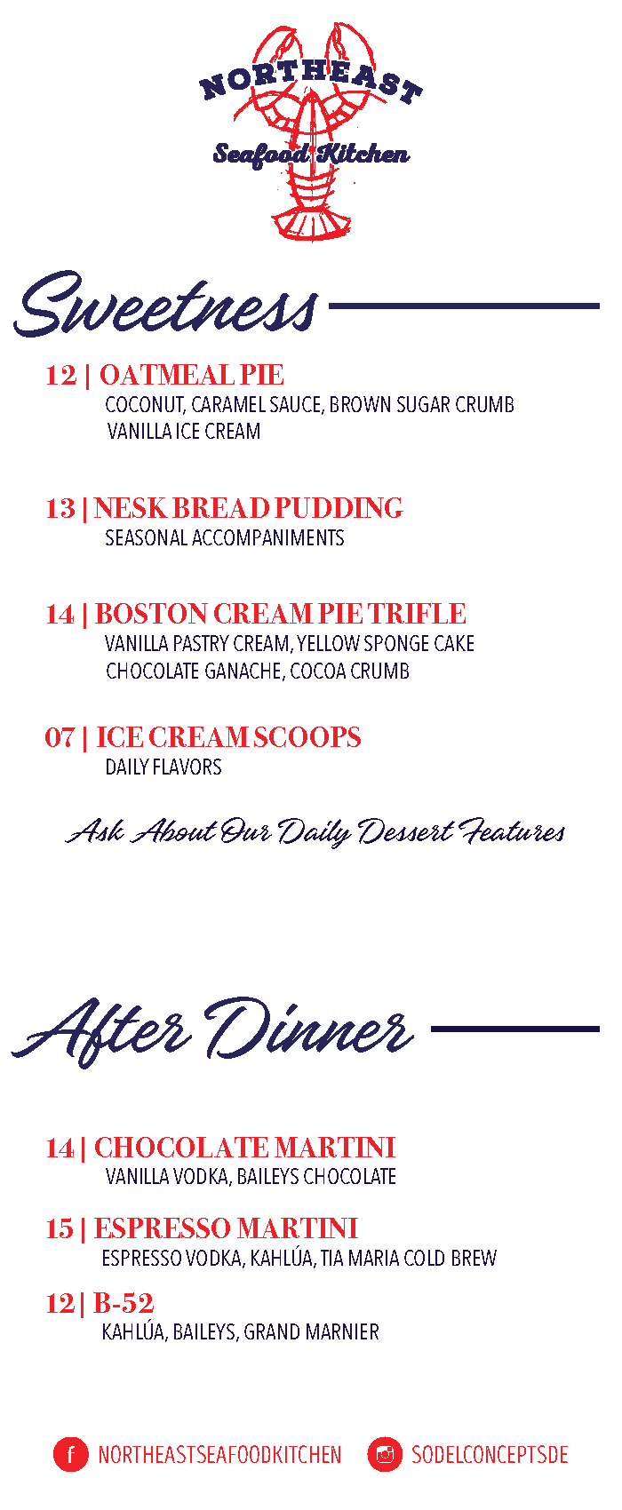 For nightly specials please call the restaurant.